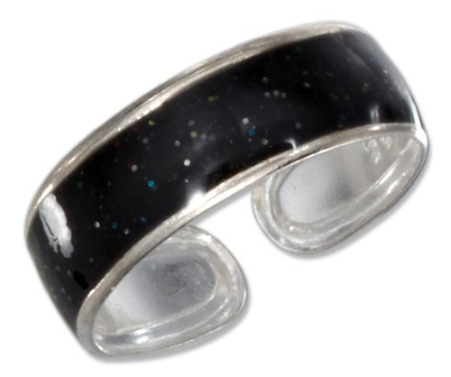 Buy Now! Sterling Silver High Polish Black Glitter Enamel Toe Ring